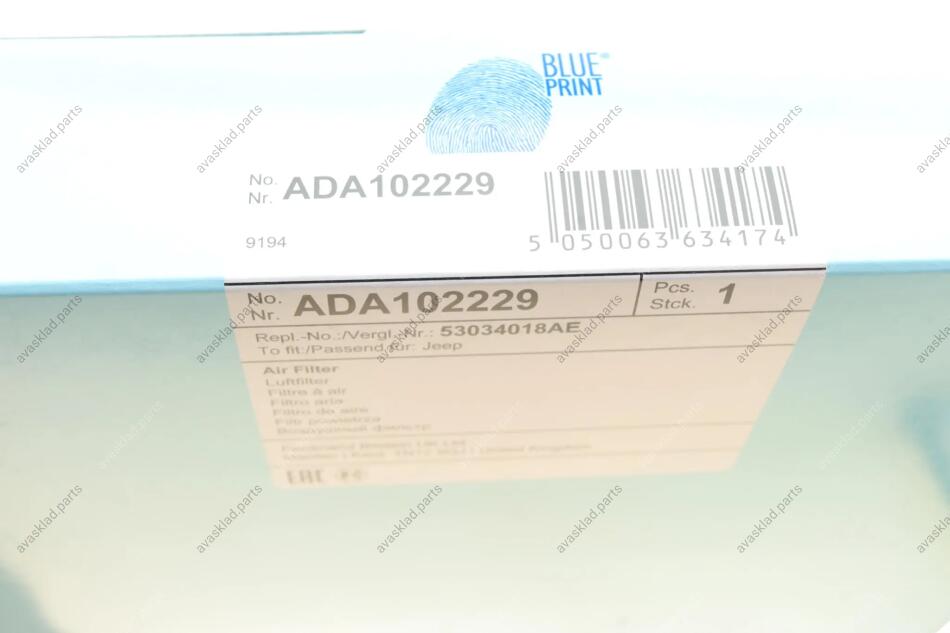 Заказать воздушный фильтр BLUE PRINT, ADA102229 вы можете на нашем сайте avasklad.parts. Быстрая доставка по всей Украине.