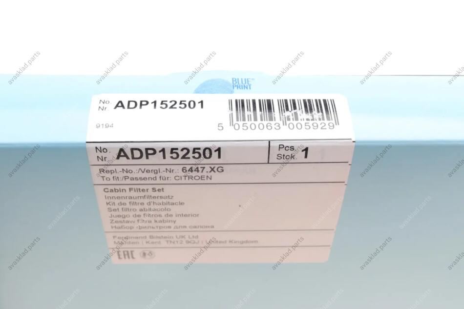 К-т змінних фільтруючих елементів повітряного фільтра салону BLUE PRINT ADP152501