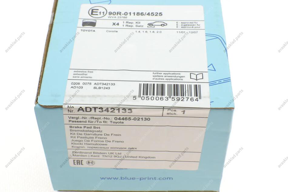 К-т колодок гальмівних BLUE PRINT ADT342133