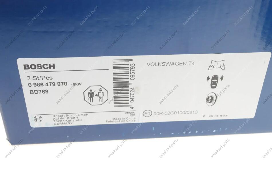ДИСК ГАЛЬМIВНИЙ ПЕРЕДНIЙ BOSCH 0 986 478 870