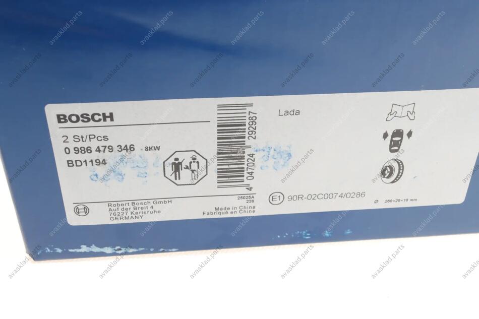 ДИСК ГАЛЬМIВНИЙ ПЕРЕДНIЙ BOSCH 0 986 479 346