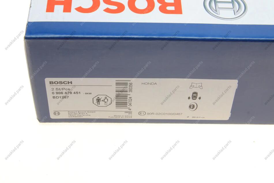 ДИСК ГАЛЬМIВНИЙ ЗАДНIЙ BOSCH 0 986 479 451