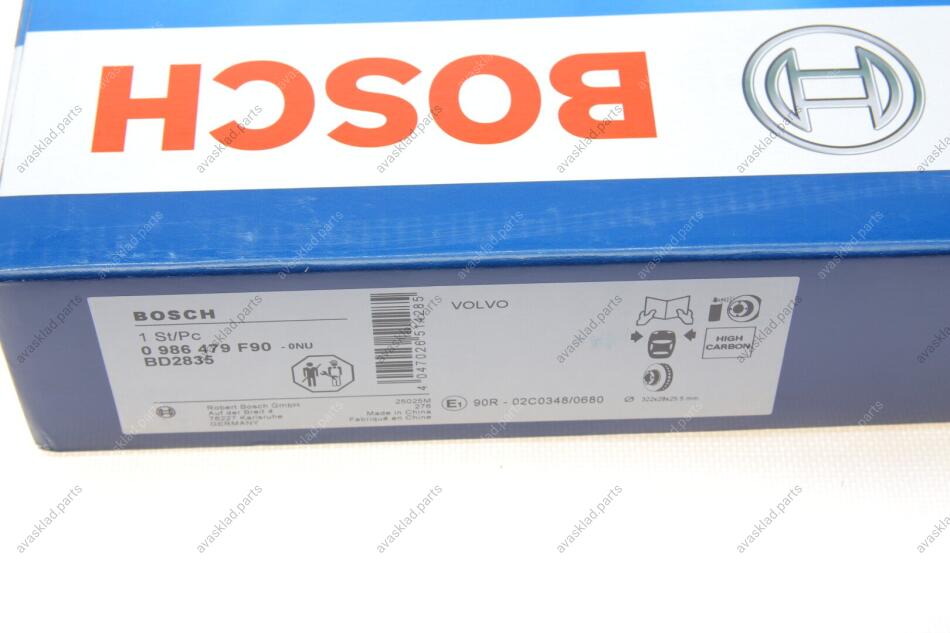 Заказать тормозные диски BOSCH, ДИСК ГАЛЬМIВНИЙ ПЕРЕДНIЙ (31423724, 31471413, 31665446) вы можете на нашем сайте Avasklad.parts. Быстрая доставка по всей Украине.