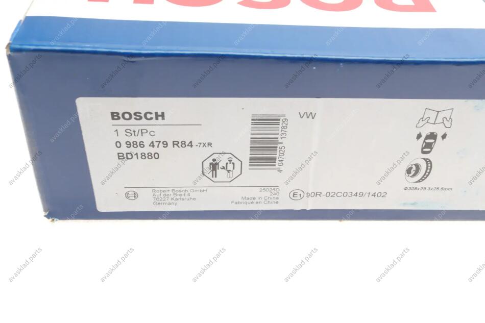 ДИСК ГАЛЬМIВНИЙ ПЕРЕДНIЙ PREMIUM2 BOSCH 0 986 479 R84