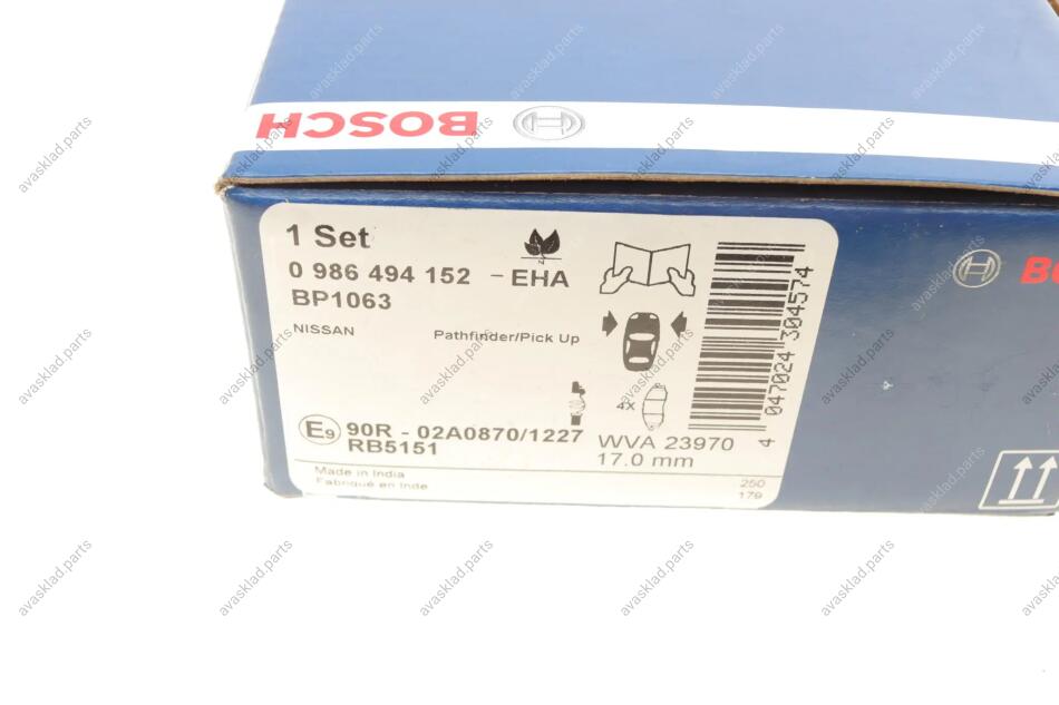 ГАЛЬМІВНІ КОЛОДКИ BOSCH 0 986 494 152