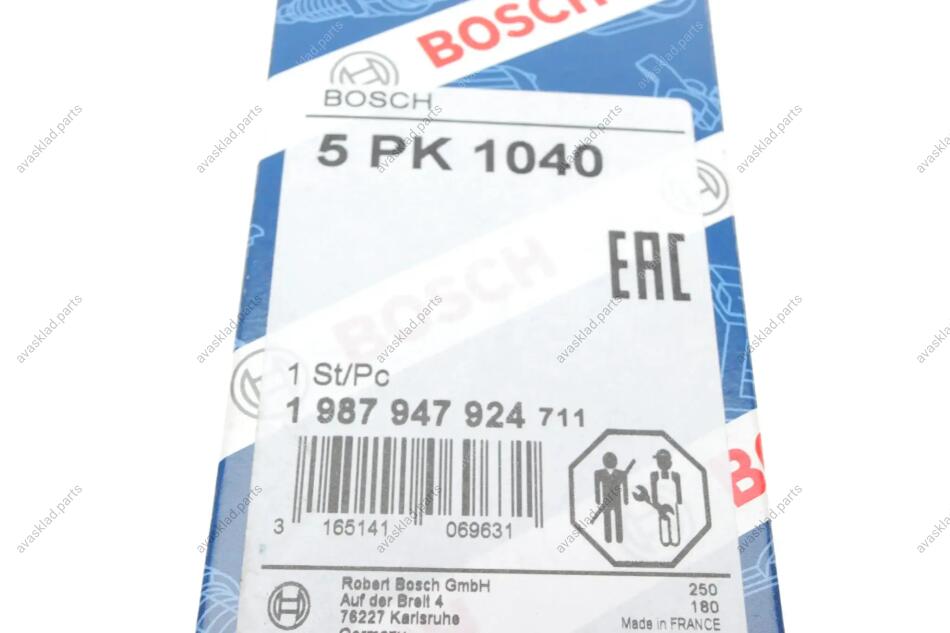Преимущества BOSCH, РЕМІНЬ П-КЛИНОВИЙ 5PK1040 BOSCH 1 987 947 924 (mb918384, 7695968, md310371):