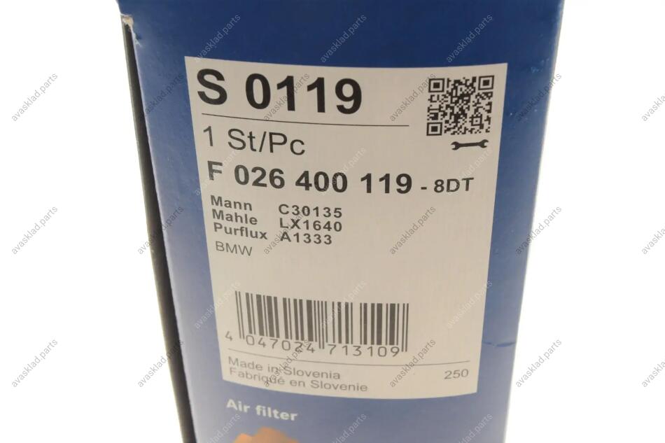 ПОВІТРЯНИЙ ФІЛЬТР BOSCH F 026 400 119