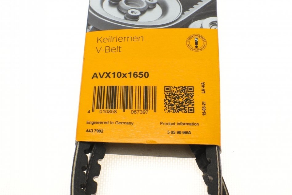 Ремень приводной Contitech, Ремінь генератора клиновий CONTINENTAL AVX10X1650 – это важный компонент подвески автомобиля, который обеспечивает