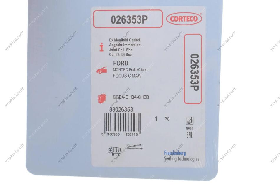 Прокладка колектора випускного CORTECO 026353P
