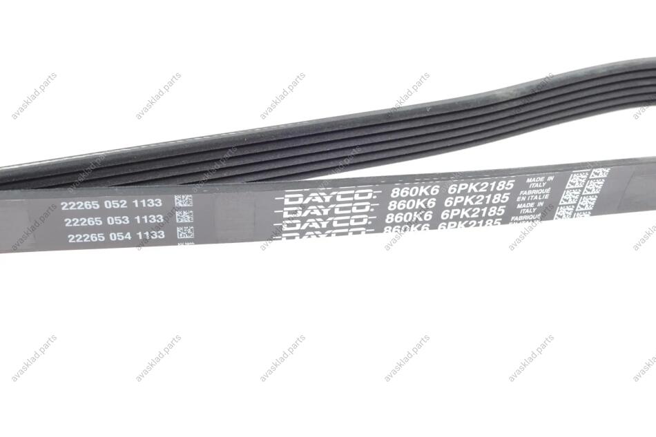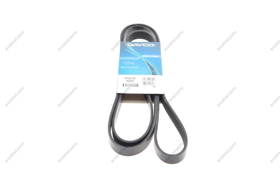 Ремень приводной DAYCO, 6PK2185 DAYCO - Ремінь (поліклиновий) (l3H615909, 9L2Z8620A, JK6865B) – это важный компонент подвески автомобиля, который обеспечивает