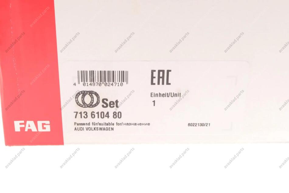 Підшипник маточини (комплект) FAG 713 6104 80