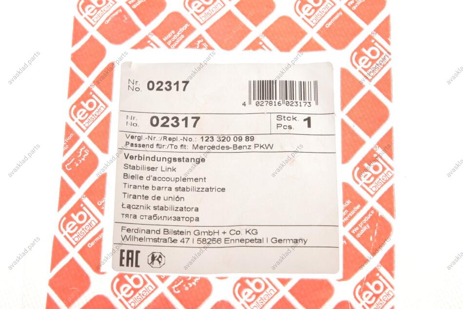 Кронштейн(тяга) стабілізатора FEBI BILSTEIN 02317