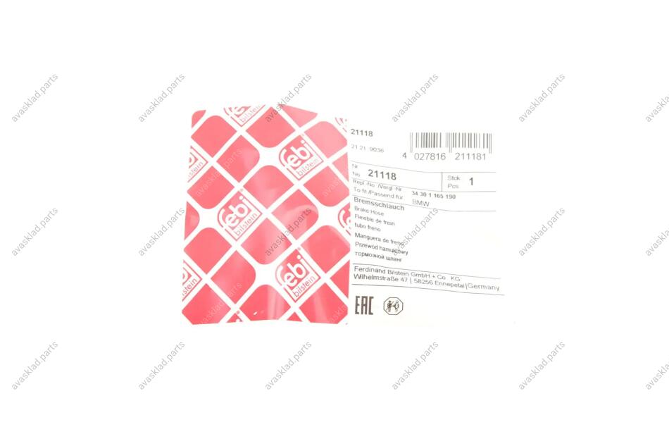 Патрубок гальмівний FEBI BILSTEIN 21118