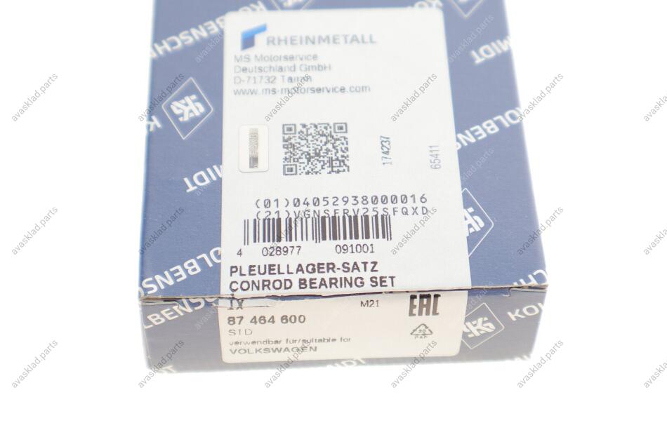 Вкладиші шатунні комплект AUDI/VW 1,6D/TD-1,9D KOLBENSCHMIDT 87464600