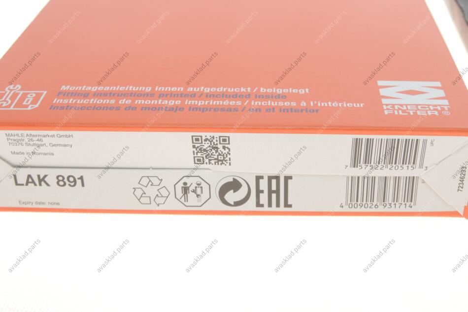 Аналоги "LAK891 MAHLE / KNECHT":
