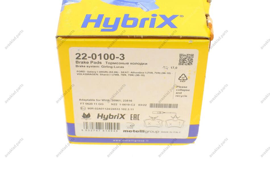 Комплект гальмівних колодок (дискових) METELLI 22-0100-3