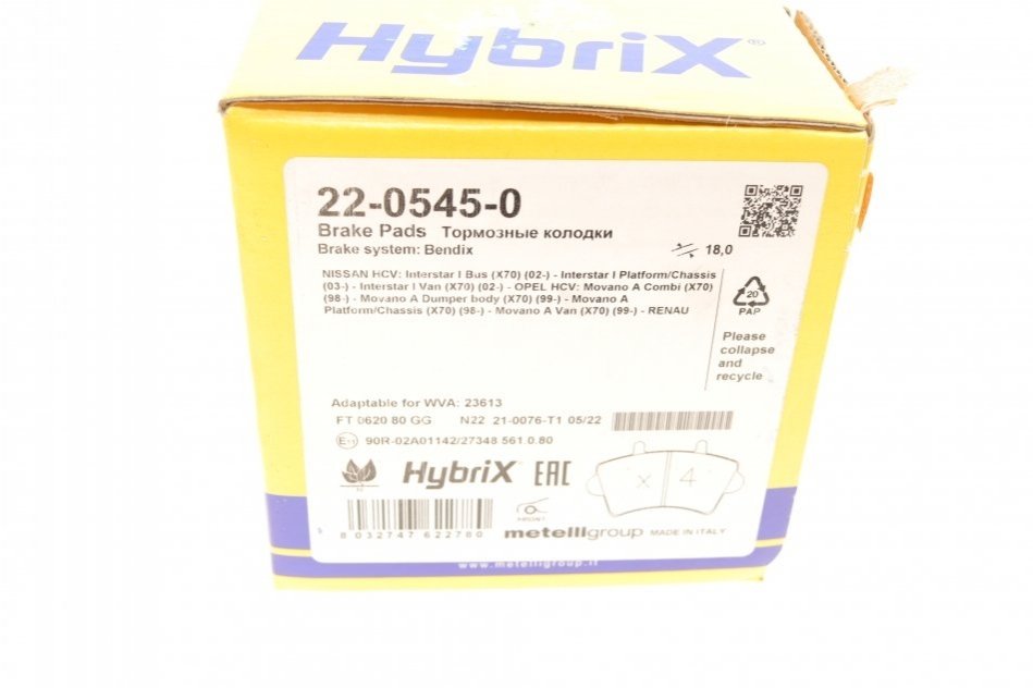 Комплект гальмівних колодок (дискових) METELLI 22-0545-0