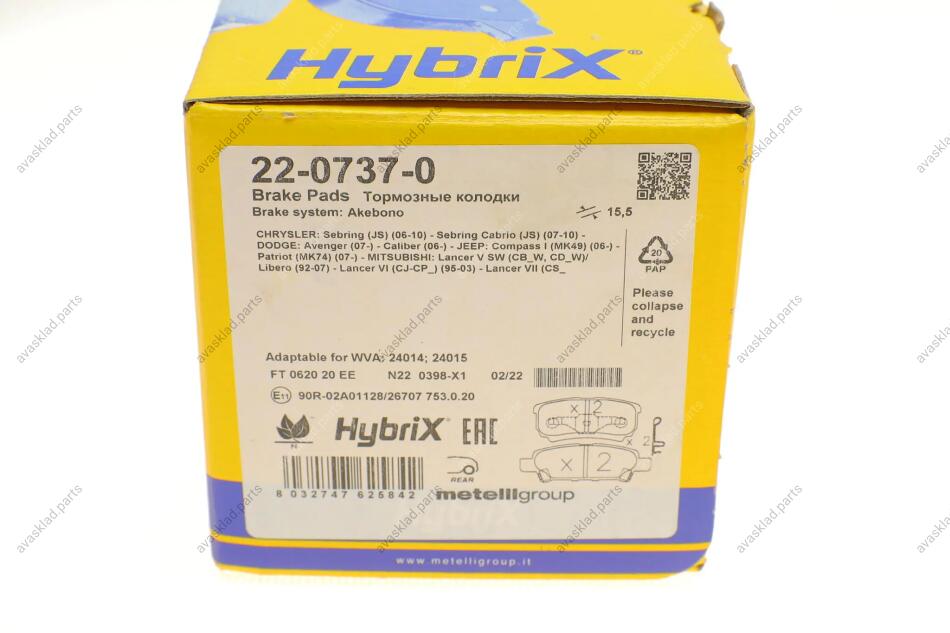 Комплект гальмівних колодок (дискових) METELLI 22-0737-0