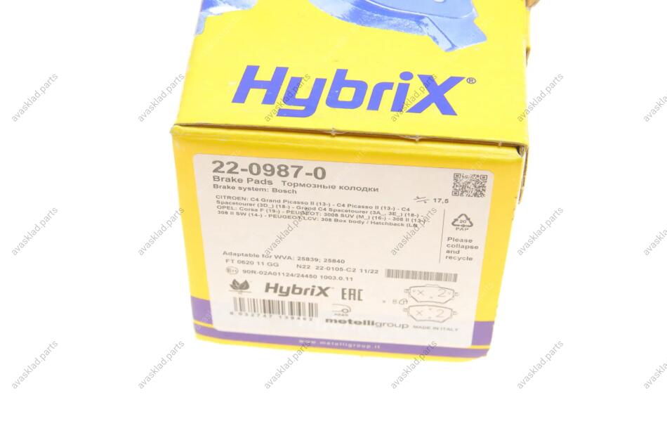 Комплект гальмівних колодок (дискових) METELLI 22-0987-0