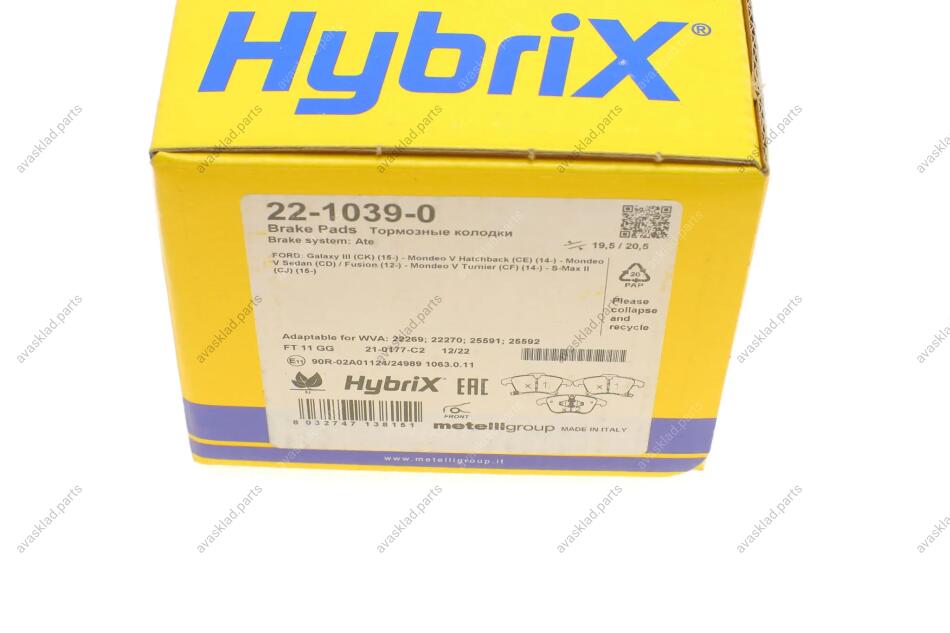 Комплект гальмівних колодок (дискових) METELLI 22-1039-0