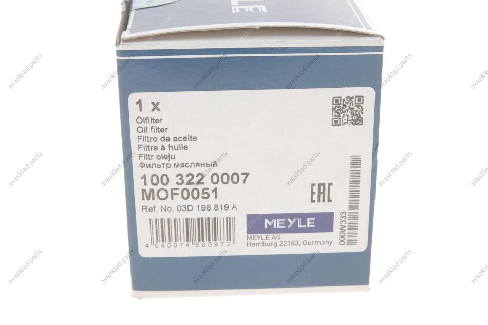 Фільтр масляний MEYLE 100 322 0007