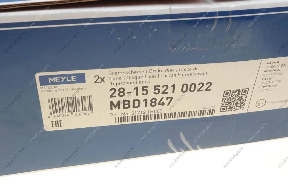 Диск гальмівний MEYLE 28-15 521 0022