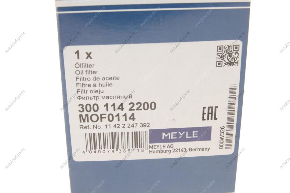 Фільтр масляний MEYLE 300 114 2200