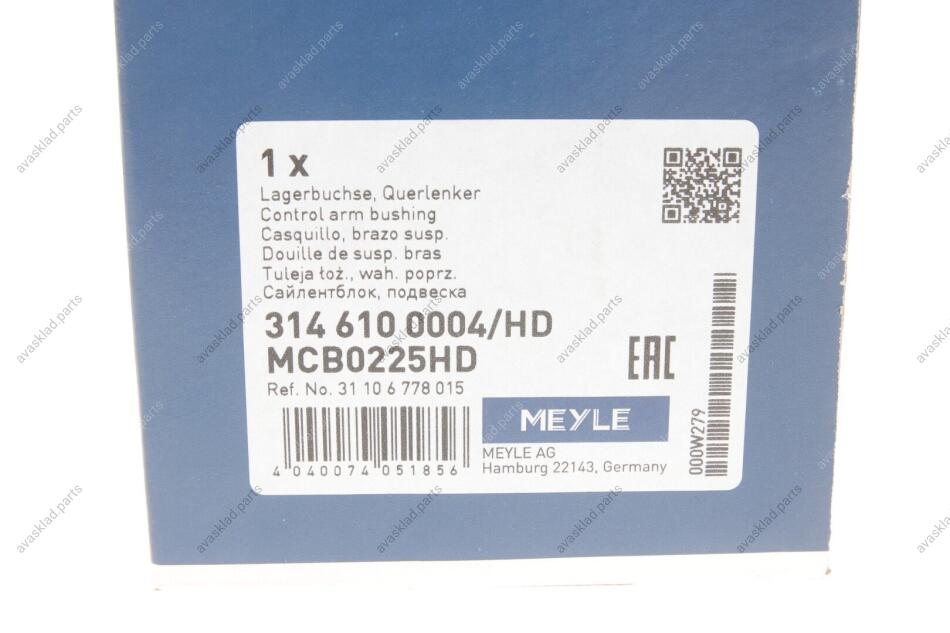Сайлентблок важеля MEYLE 314 610 0004/HD
