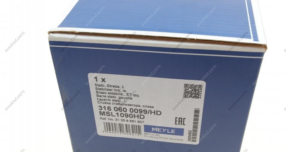 Преимущества MEYLE, Стійка стабілізатора ліва (31356881807, 6881807):