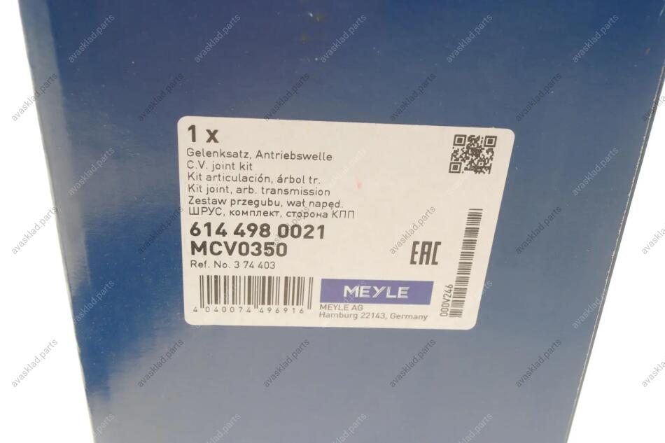 Аналоги "614 498 0021 MEYLE":