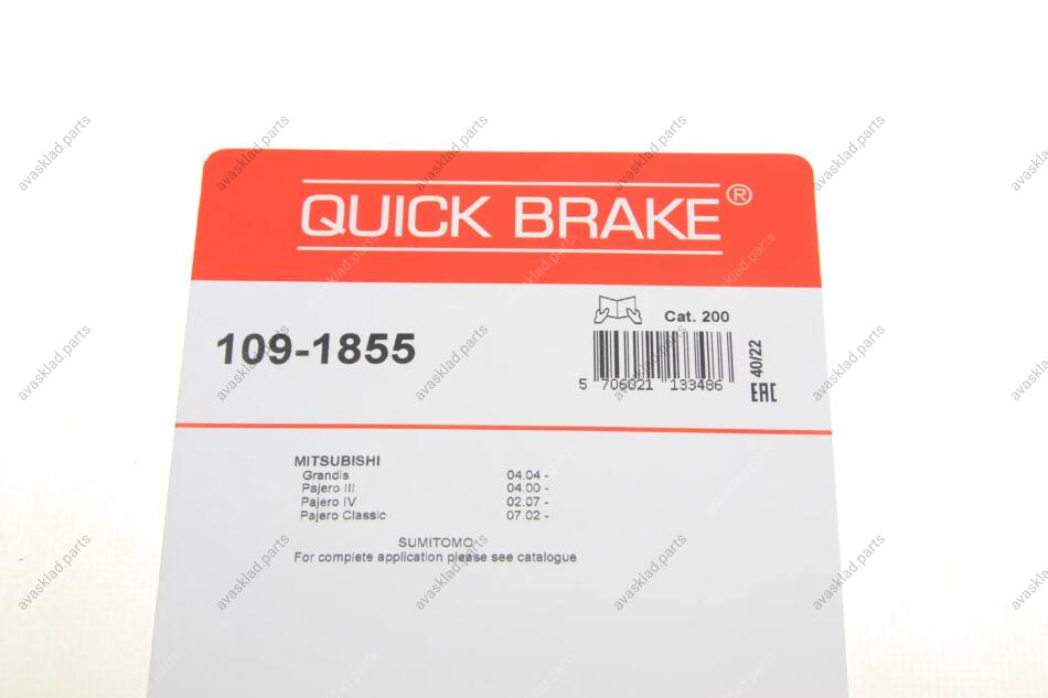 109-1855 QUICK BRAKE Планка супорта (переднього) прижимна (к-кт) Mitsubishi Pajero 00- (Sumitomo)