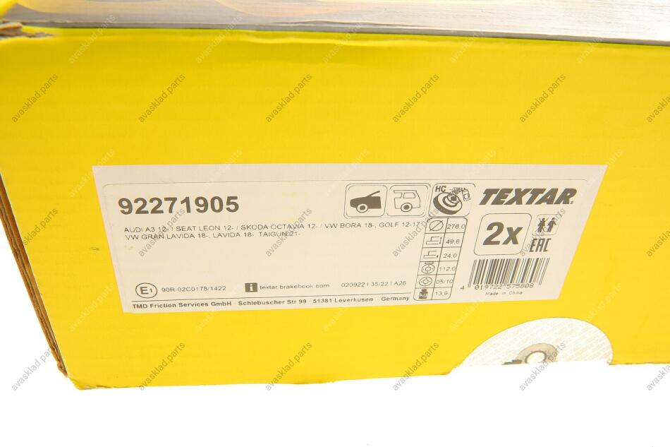 92271905 TEXTAR Диск гальмівний