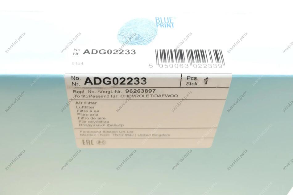 Фільтр повітряний BLUE PRINT ADG02233