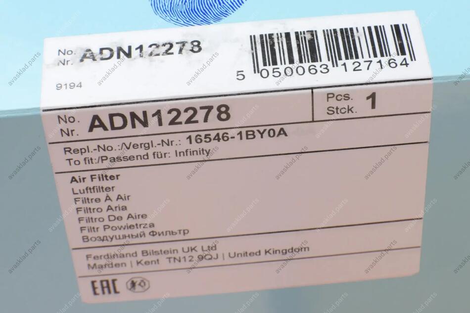 Фільтр повітряний BLUE PRINT ADN12278