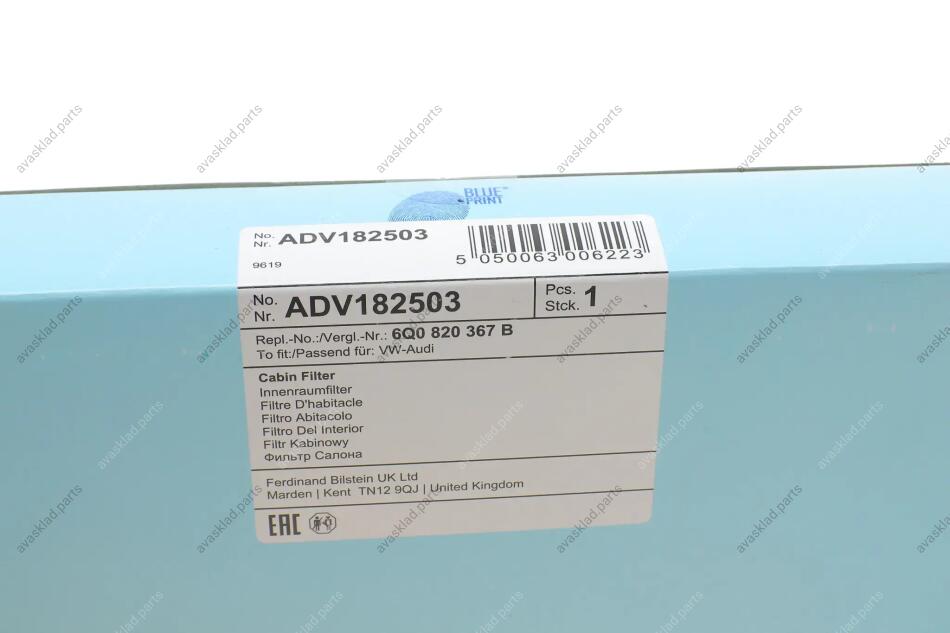 Змінний фільтруючий елемент повітряного фільтра салону BLUE PRINT ADV182503