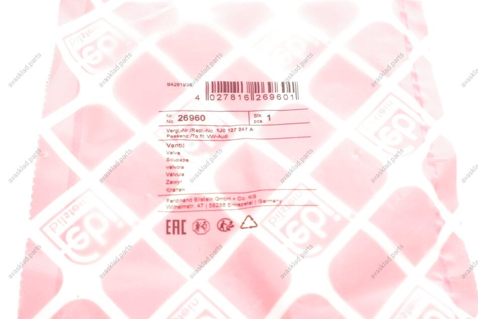 Клапан паливного фільтра FEBI BILSTEIN 26960
