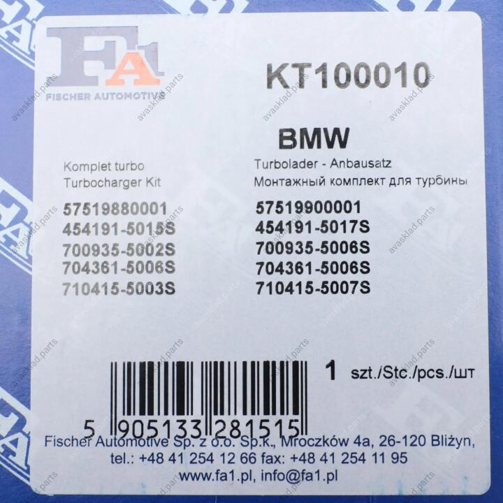 Комплект прокладок турбіни BMW X5 E53 00-07, 5 E39 97-04, 3 E46 99-05; OPEL Omega B 93-03 Fischer Automotive One (FA1) KT100010