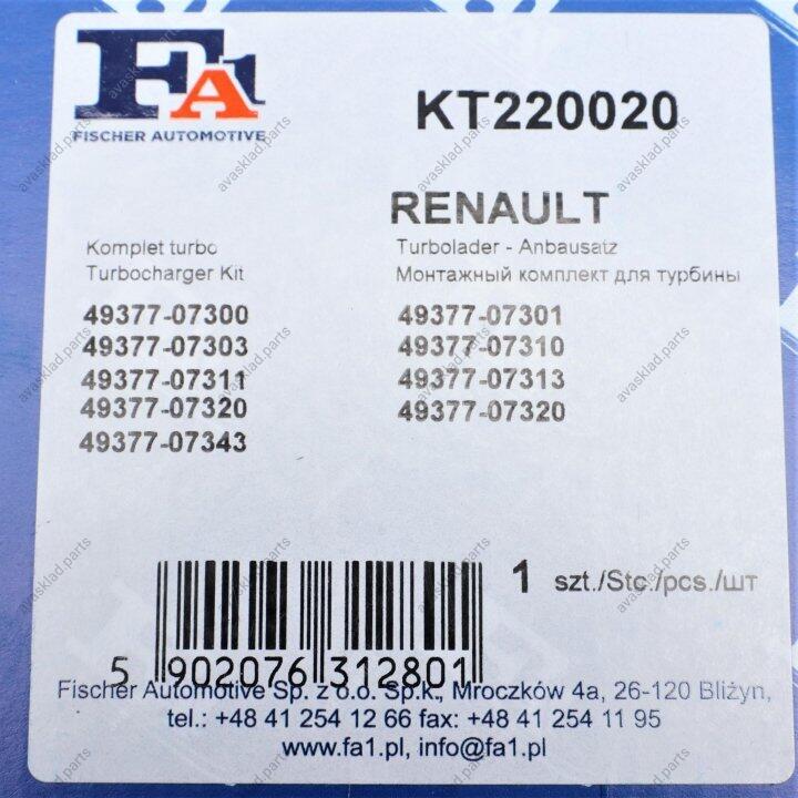 Ремкомплект турбіни RENAULT Megane III 09-16, Laguna 07-15, Espace 02-15, Laguna 00-07, Vel Satis 02-09 Fischer Automotive One (FA1) KT220020