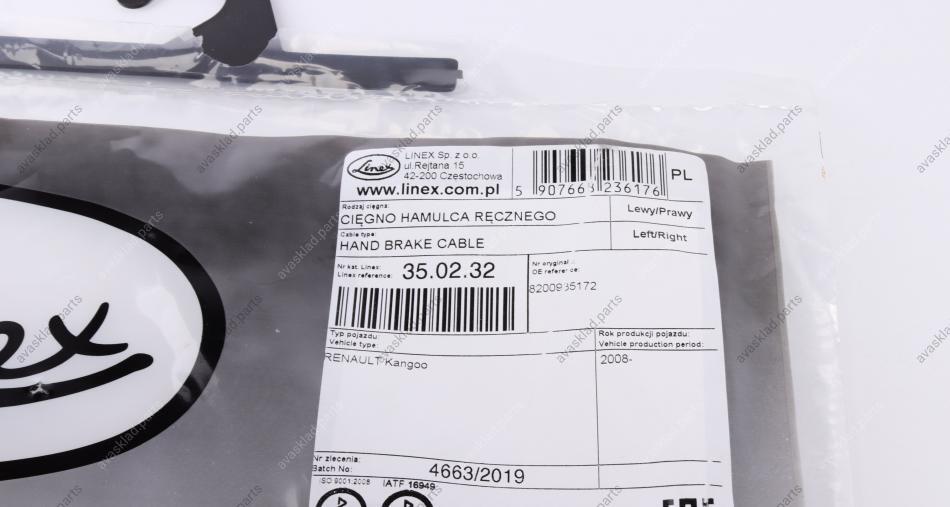 Трос стоянкового гальма RENAULT Kangoo 08-17