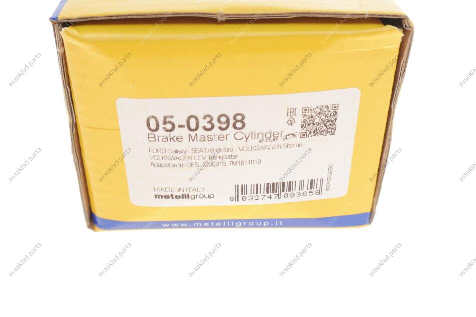 Циліндр гальмівний (головний) METELLI 05-0398