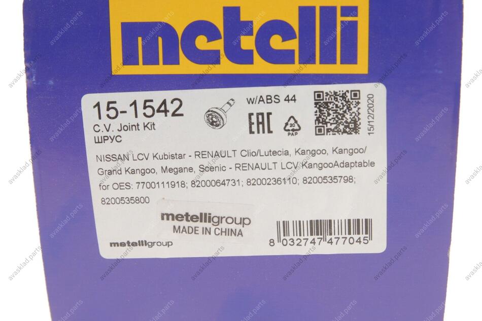 РШ шарнір (комплект) METELLI 15-1542