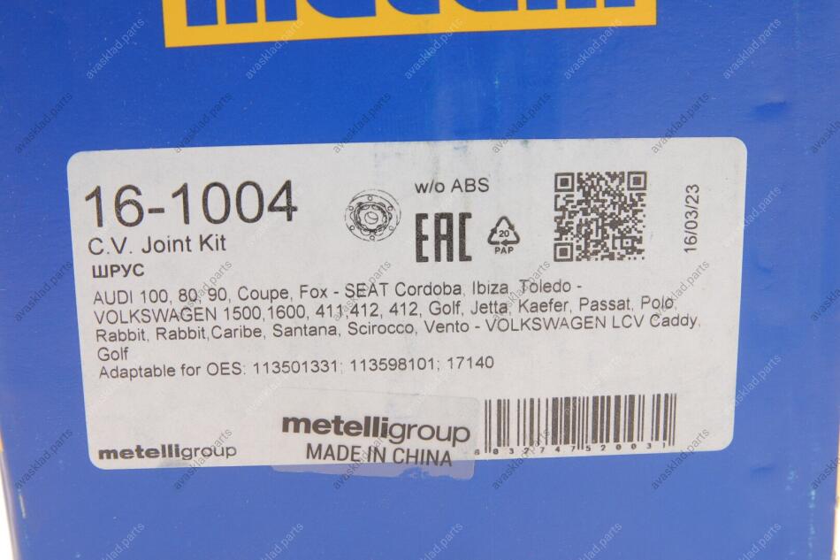 РШ шарнір (комплект) METELLI 16-1004