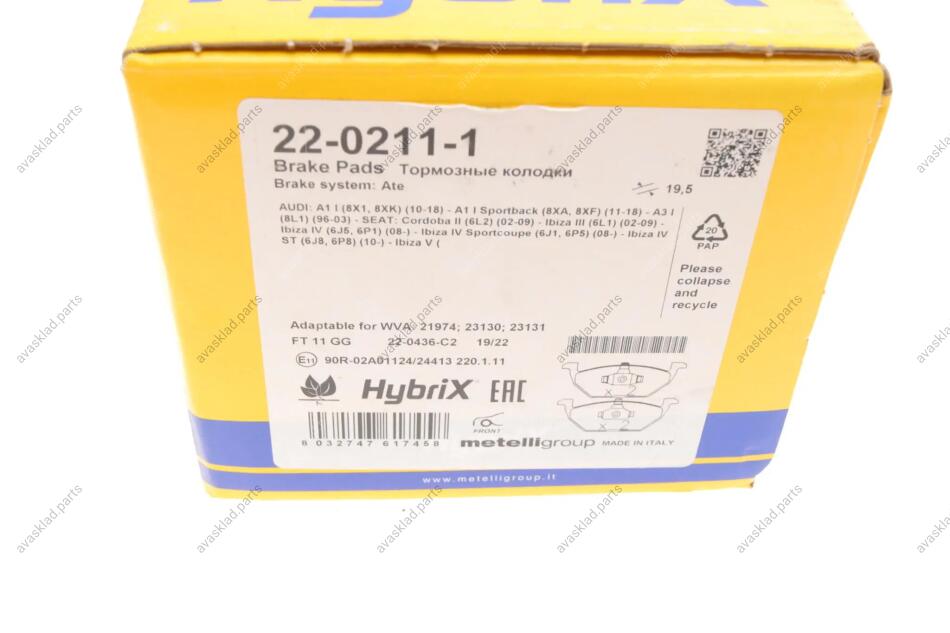 Комплект гальмівних колодок (дискових) METELLI 22-0211-1