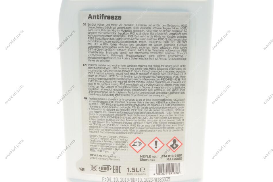 Охолоджуюча рідина для радіатора MEYLE 014 016 9100