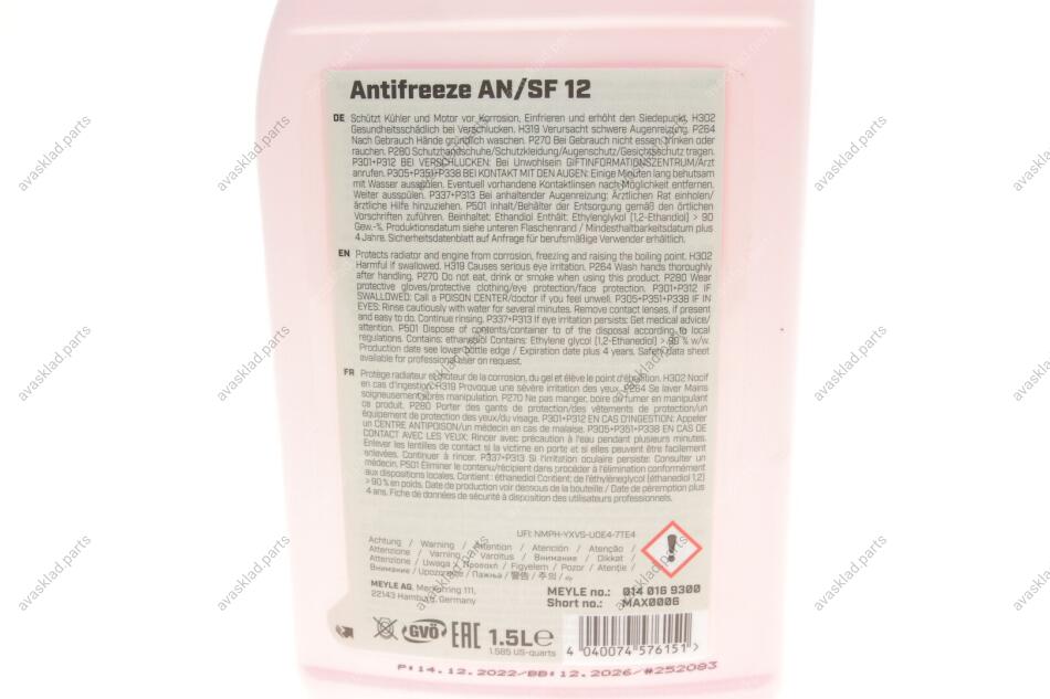 Специфікація: G 12 Plus, MB 325.3, VW TL 774 F, Ford WSS-M97B44-D