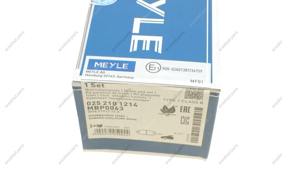 Комплект гальмівних колодок MEYLE 025 210 1214
