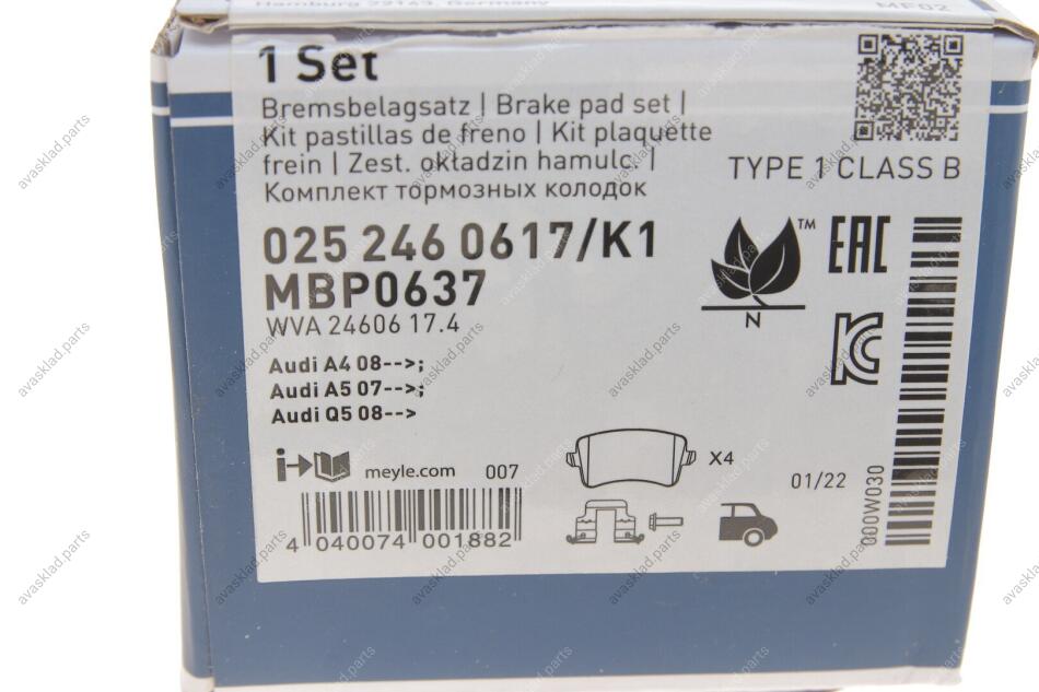 Комплект гальмівних колодок MEYLE 025 246 0617/K1