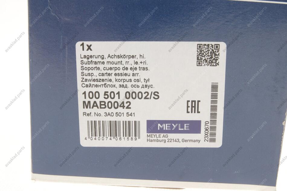 Аналоги "100 501 0002/S MEYLE":