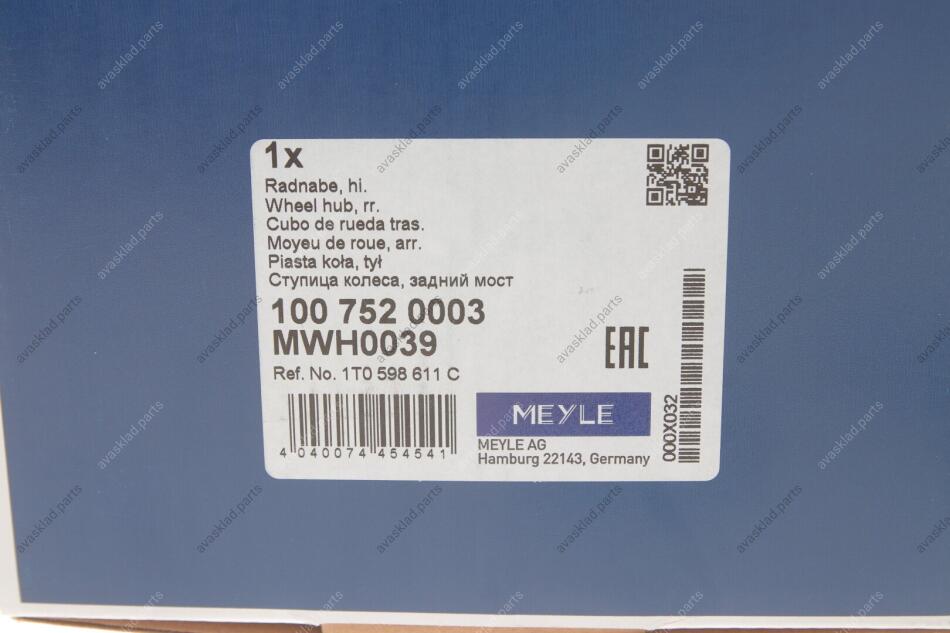Маточина колеса з інтегрованим підшипником MEYLE 100 752 0003