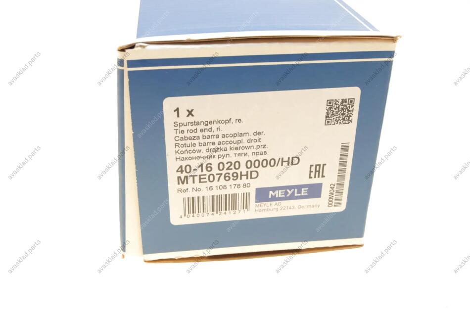 Накінечник кермової тяги MEYLE 40-16 020 0000/HD